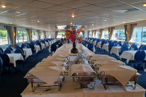 Ihre Sitzplätze auf einem der Innendecks werden direkt bei Buchung für Sie reserviert. Hier wird auch das Buffet serviert. Das Freideck steht zur freie Platzwahl zur Verfügung – ideal für Ausblicke, Fotos und Tanz unter freiem Himmel. Die Sitzplätze im Innenbereich sind fest für Sie reserviert. Fensterplätze können nicht garantiert werden.