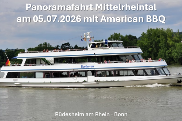Panoramafahrt Mittelrheintal mit BBQ am Sonntag 05.07.2026 nach „Rhein in Flammen“